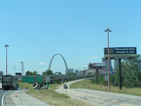 The next morning after returning some items at Camping World and picking up a few more things (of course), we started the rest of our journey to ol' St. Lou. The second half of Indiana seemed longer than the first half, and Illinois seemed even longer. Not much to see but farmland and not many towns between. But finally we could see the Arch off in the distance, and we knew we were close to the end of our trip. As we crossed over the Mississippi River, there right in front of us was the new Busch Stadium! How exciting! I didn't realize it was that close to the highway!