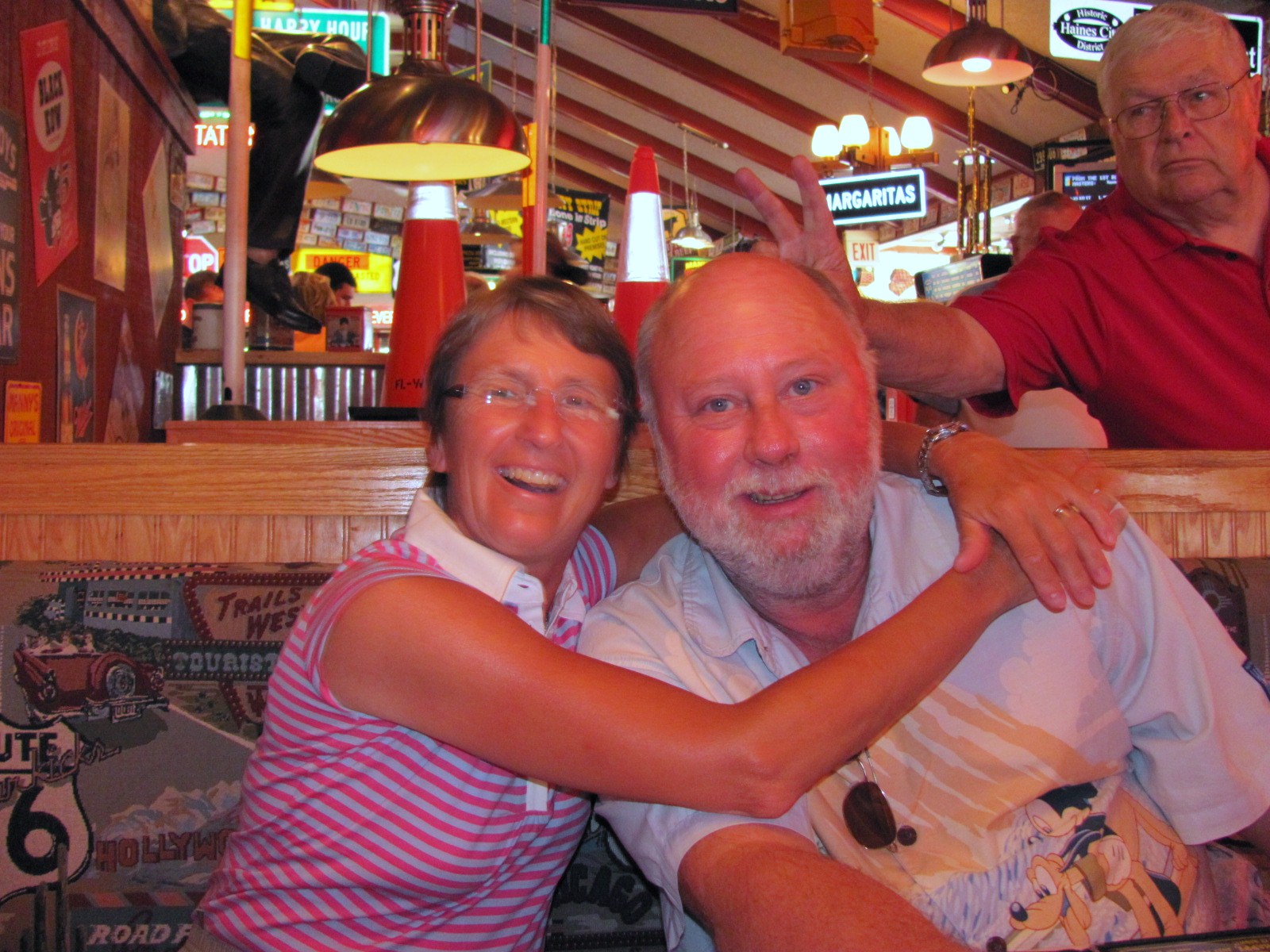 The next day they moved their coach about a mile down the road to the Thousand Trails campground, where they are members and can stay for free. They invited us for dinner, and Russ brought Henrik a St. Louis Rams cap to add to his collection. Anne made an Indian Curry Chicken casserole…simply delicious! More food, more drinks, more fun.