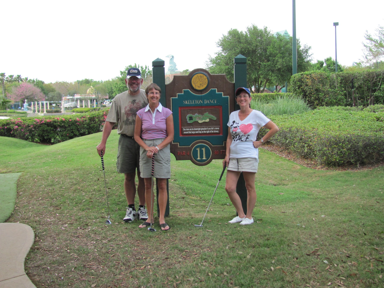 Sat. the rematch was on for Russ and Henrik when we took them to play miniature golf at Disney’s Fairways Course. This is not the easy, fun course with all the Disney characters that I played with Linda and Angela, but rather one that resembles a traditional golf course with mounds, valleys, and an emphasis on skill. Henrik was sure he’d beat Russ this time, but alas, that was not the case…Russ won by 4 strokes. A rematch on a regul
