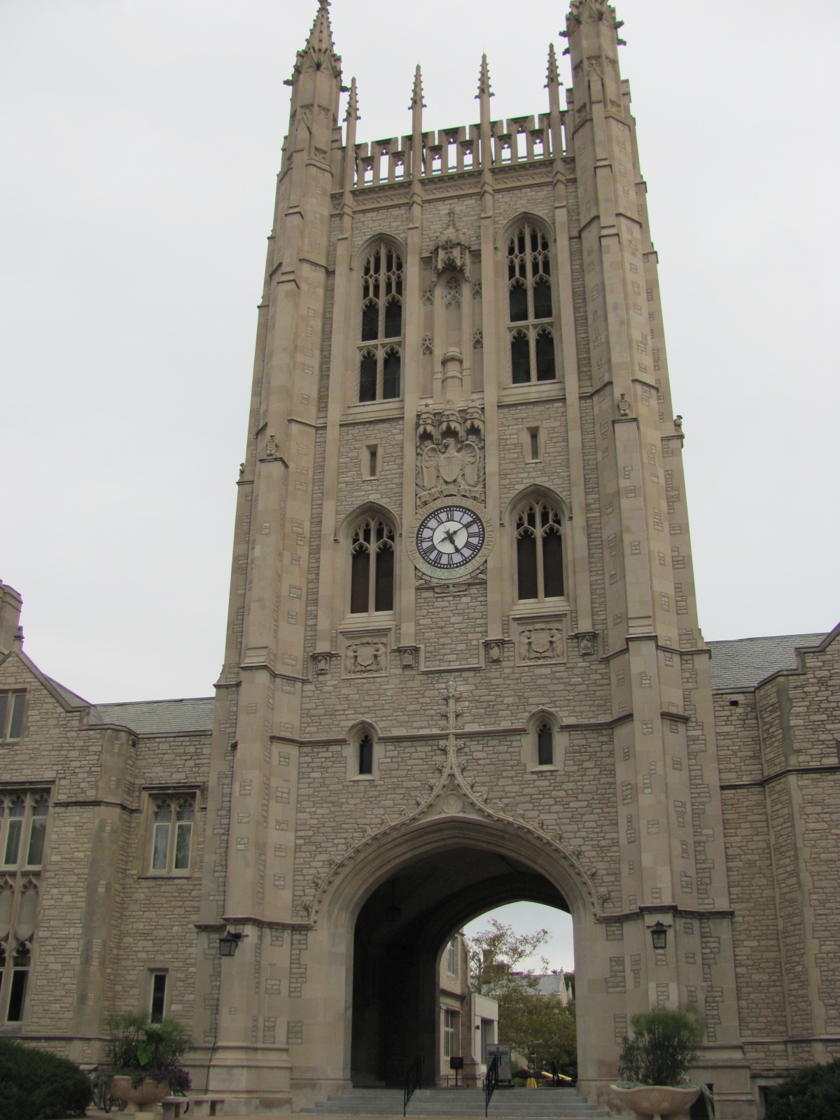 Walking across campus to the restaurant and the stadium was fun as we passed tailgating students and alumni…there’s nothing like a college game atmosphere! We also passed Memorial Student Union, a beautiful structure with its impressive Memorial Tower that was completed in 1926 to honor 117 Mizzou men who lost their lives during World War I and whose names are inscribed on the inside walls of the tower archway. And of course we had to get a picture of Russ in front o