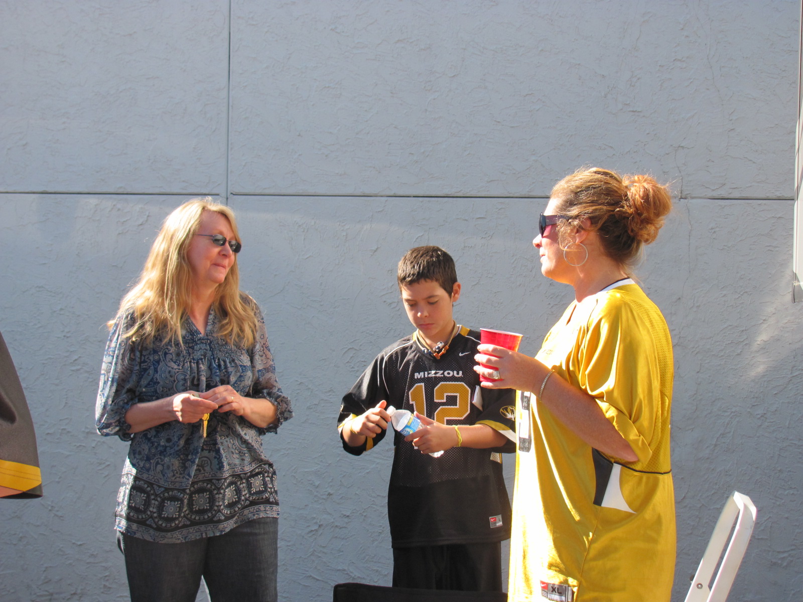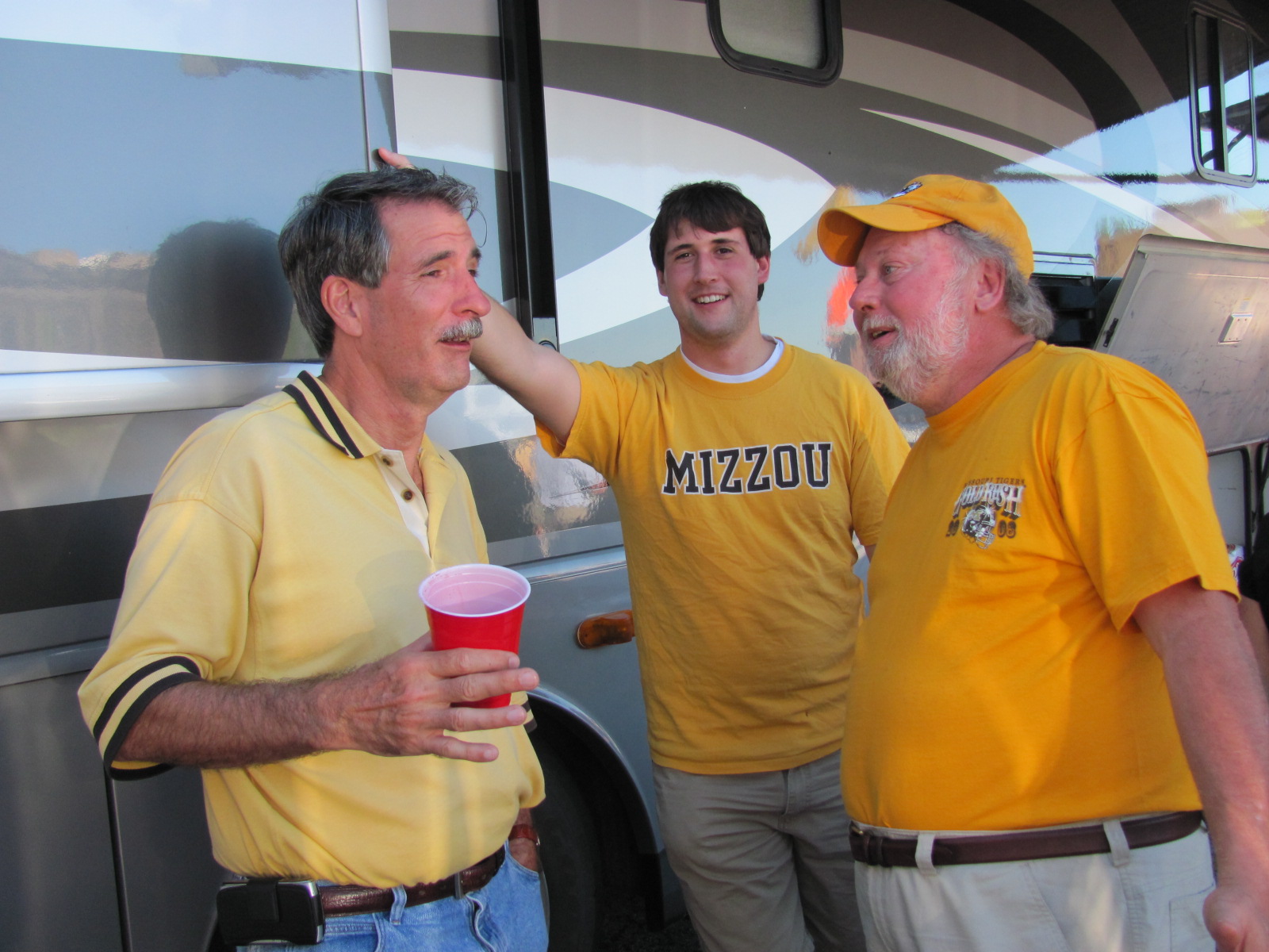 lowing week found us visiting our friend, Bob, at the San Bar Tavern in Russ’ old neighborhood, Angelo and Carmen at Lombardo’s while enjoying one of their yummy pizzas, and Steve coming over to help Russ with an oil and filter change on the RV’s generator. Then the next couple of days were spent coordinating and preparing for the 4th annual tailgate party to be held prior to and after the Missouri/Illinois football game on Sat., Sept. 4, in downtown St. Louis. The first year there were only about 15 in attendance, but it has grown over the years with about 40 this year. The day before the big game I cooked up 5 lbs. of potatoes for my special homemade potato salad, made 60 deviled eggs, and 2 big pots of gumbo (all part of the tradition). We had purchased 5 cases of Heineken (tradition!), 2 cases of soda, a case of water, 4 bottles of wine, 30 Italian sausages, 18 brats, all the condiments to go with the