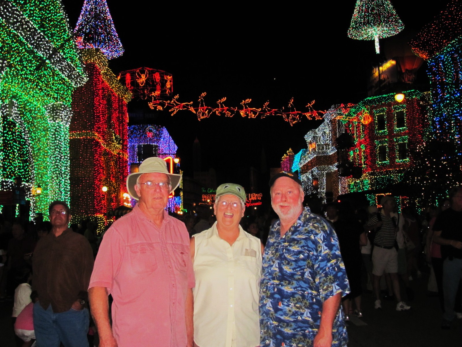 OsborneLights). We arrived shortly before 6pm, the time the Spectacle begins, and stood with hundreds of others in the middle of “Streets of America”. At precisely 6pm, more than 4 million lights that drape nearly everything in sight came on all at once accompanied by Christmas music and “snow flurries”…Beth and Dick were amazed. No matter how much you read about it or how many pictures you see, nothing compares with experiencing it!