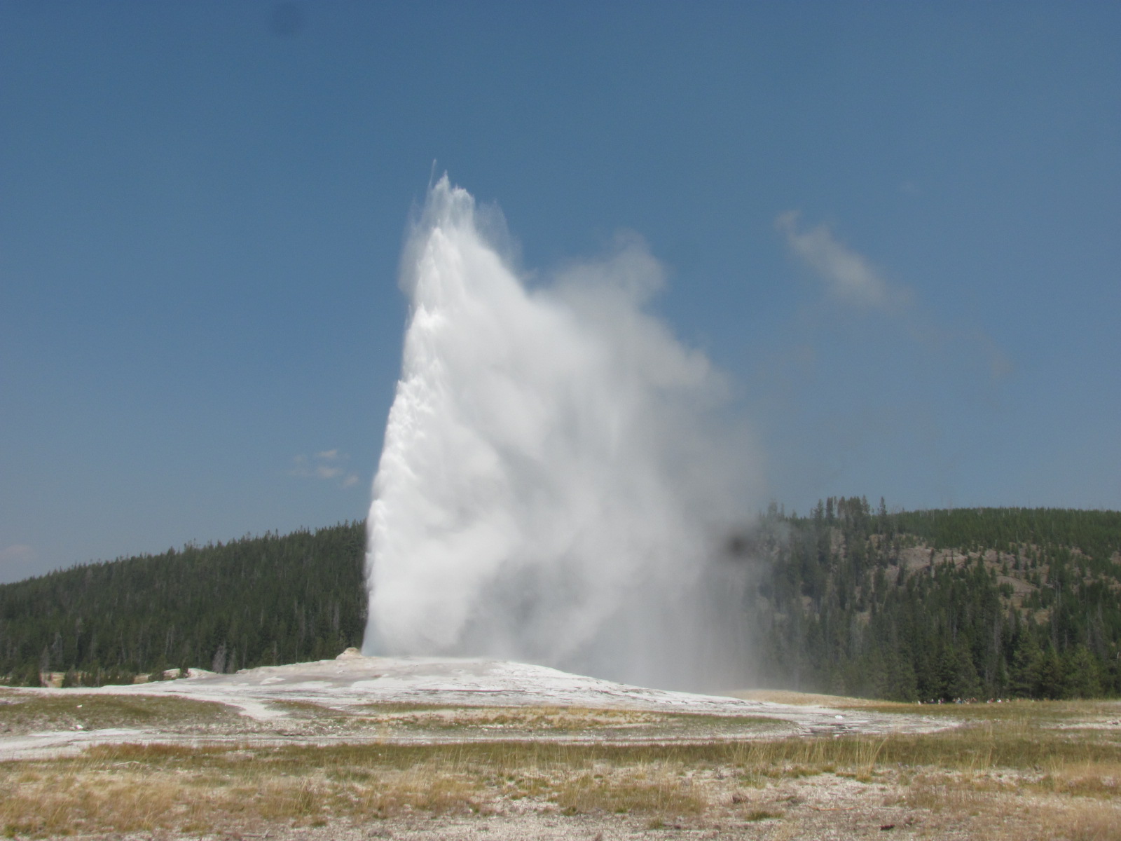 *Old Faithful erupts about every 90 min. expelling 3,700 – 8,400 gallons of water 106 – 180 ft. with a temperature of 203 degrees F lasting 1-1/2 – 5 min.