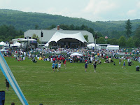 rted with a gentleman dressed in a Mudville uniform reciting "Casey at the Bat", followed by a men's quartet singing the American and Canadian national anthems. Then all 56 HOFers were introduced, and the speeches and presentations began. The weather cooperated with no rain, overcast at times, but warm there among the crowd. Eventually we moved up on the hill, and though much further back, the breeze was wonderful and constant. At the base of the hill, people played catch or took batting practice with whiffle balls. We didn’t stay for the whole ceremony, but it was great to have had the opportunity to attend.