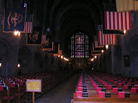 The final stop on our tour was the Cadet Chapel on top of the hill, another beautiful church. As you can see in the photo below left, the fact that it is a military operation is evidenced by the bibles and hymnals being perfectly aligned all the way down to the front of the church! It is home to the world’s largest church organ, and as in Annapolis, one pew is set aside for the POWs and MIAs with a large candle that is lit everyday, and no one may sit in this pew.
