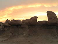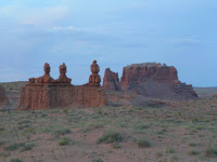 We arrived at Goblin Valley State Park around 10am and found that even though their website indicated their campground could not accommodate the size of our rig, we found that many sites could indeed do so. After talking to the ranger at the entry to the park, we ended up making arrangements to spend our first night in Goblin Valley. The campsite fee was $16 and although the campground had no hookups, a modern bathroom facility, fresh drinking water, and a dump station were available. Although the temperature reached the low 90s without a cloud in the sky, a cool breeze made for a most enjoyable afternoon.