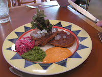 uld try it out for dinner. We had walked over before its opening that day to check out the menu and were given a short tour by the owner/chef, Gary Pankow. We moseyed back at dinner time, enjoyed a couple margaritas and split the Rattlesnake Cakes served with 3 dipping sauces as an appetizer, which we surprisingly really enjoyed. Russ had the Pumpkin Seed Trout (caught locally), and I chose the Turkey Chimole. W