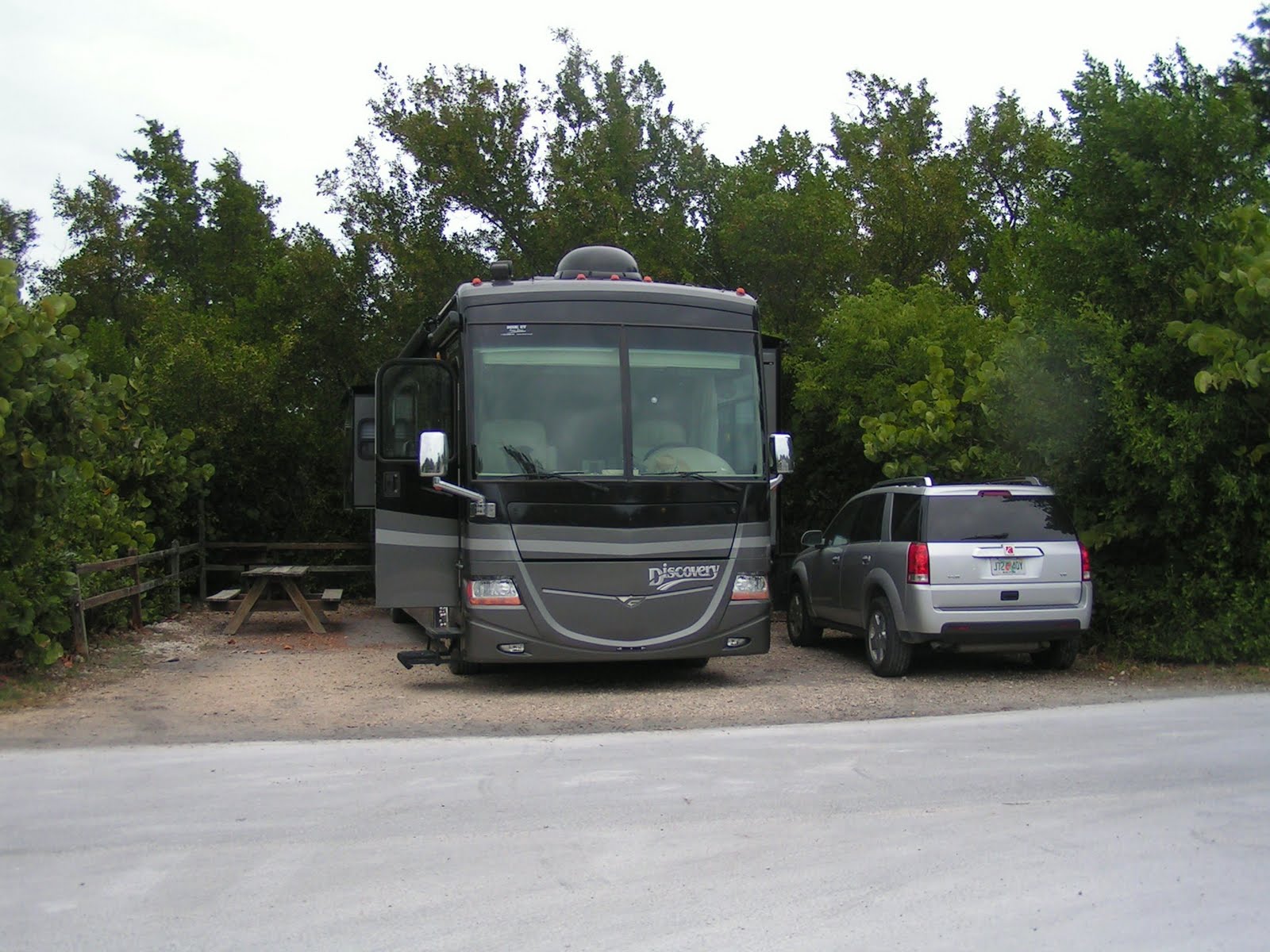 our reservation from 9 nights to 3. We had become spoiled at Long Key with our site right on the ocean, and though this park has some sites on the water, we didn’t have one and those that we passed were not very impressive. Most have a view of the 7 mile bridge stretching across the channel between the Gulf of Mexico and the Florida Strait, and all the cars passing over it. Within this 524 acre state park there are 3 campgrounds but only 1 with sites large enough to accommodate RVs. Our site, though very large and surrounded by shrubbery, was directly across from the bath house, dumpster, and dump station…convenient but not very pretty. In fact, it seemed to us just like any other cam