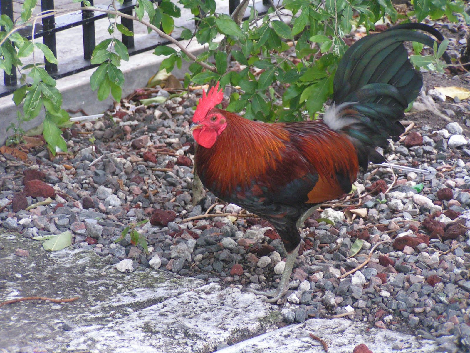 Roosters run free all over Key West, and as we continued our walk, we even spotted a hen and her chicks keeping cool under a bush. We walked up and down Duval St., looking at menus and in shop windows, and ended up at Caroline’s CafĂ© for a late lunch. Our table was outside, overlooking Duval St., and