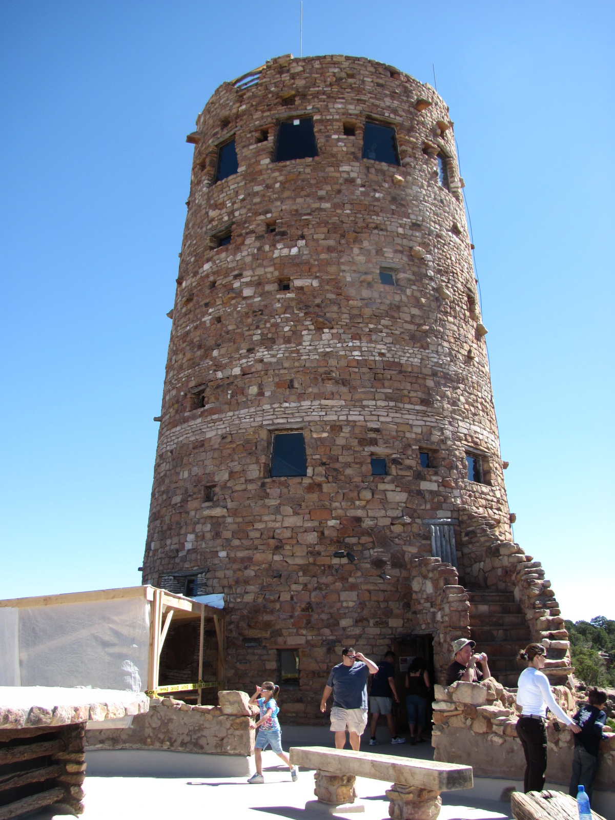 We also visited The Watchtower in the Desert View area of the canyon. Built in 1932, this 70 foot stone tower is the highest point on the South Rim and has Hopi murals on the interior walls. Originally it was an observation station and rest stop for Grand Canyon visitors. Today it has a big gift shop on the first floor and climbing the narrow stairs still offers spectacular views of the canyon and surrounding area.
