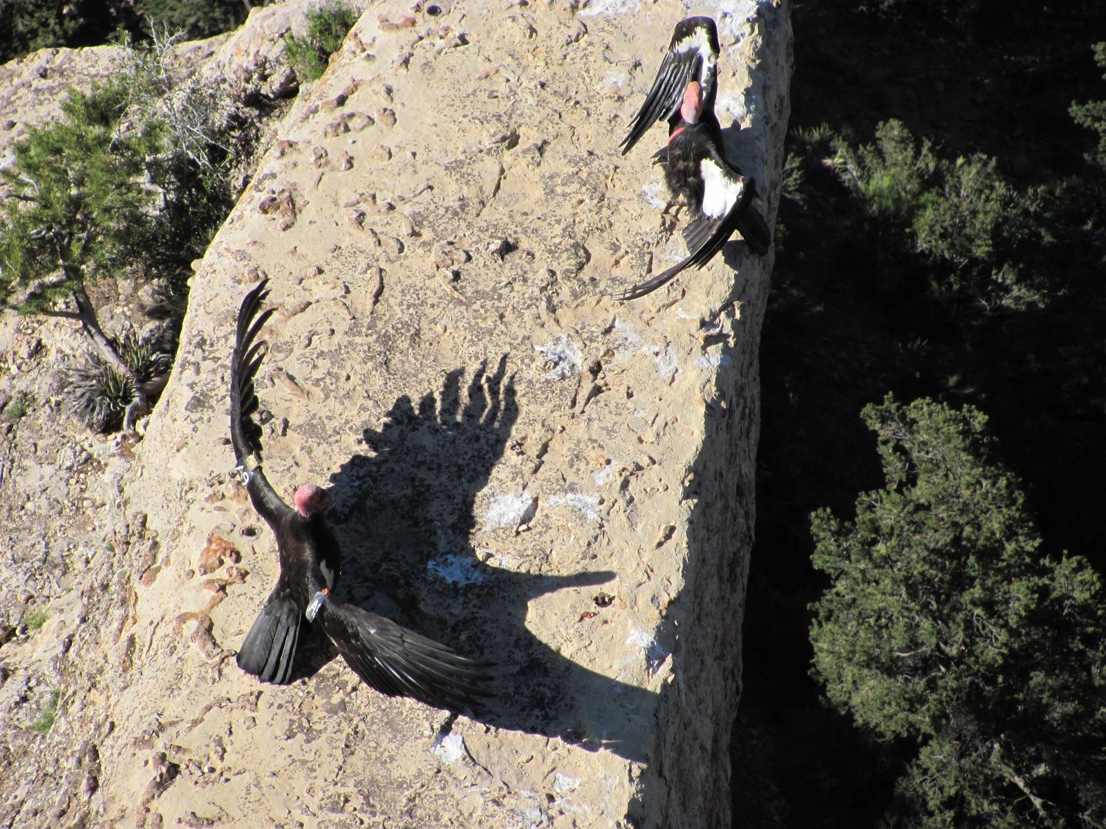 or easy tracking. The first day we saw #-0 and #23, and the next time we saw #A9 and #23 again, plus about another half a dozen were gliding on the wind whose tags we could not make out. We had learned that condors do not flap their wings, and this time we saw how true that really was. When they land on a ledge and are ready to take off again, they simply walk to the edge, spread their wings, and catch the draft. What an incredible sight! If you’re interested, this website will give you all the pertinent info by tag number on the condors that we saw: (http://www.nps.gov/grca/naturescience/upload/condor-tag-cht20100505.pdf)