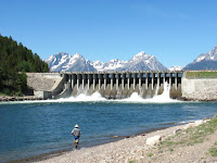 Our favorite spot last year was at Oxbow Bend, not the turnout but a spot right on the Snake River. Very early one morning we loaded the dogs into the car with the outdoor temperature still at 35 degrees (it gradually warmed up), and stayed several hours watching ducks, pelicans, geese, osprey, and bald eagles. Though the drive was m