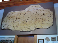 Inside, near the ceiling, was a “mass mortality” slab measuring about 3’ x 8’ of over 300 fish fossils. No one is absolutely certain what caused these types of mass mortalities but all the fish were killed suddenly. We also watched a ranger in the lab preparing and cleaning some fossils (which takes incredible patience) as she explained the process.