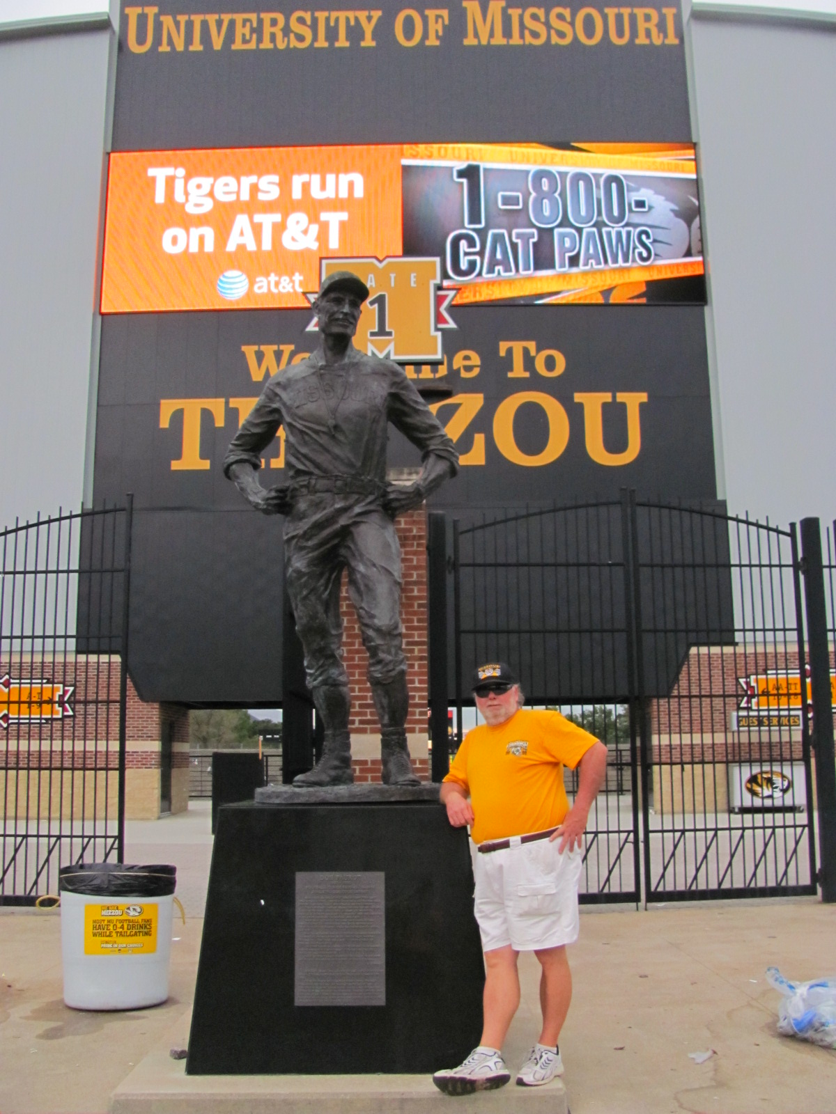 f the stadium with the bronze statue of legendary Coach Don Faurot (pronounced fuh-row)!