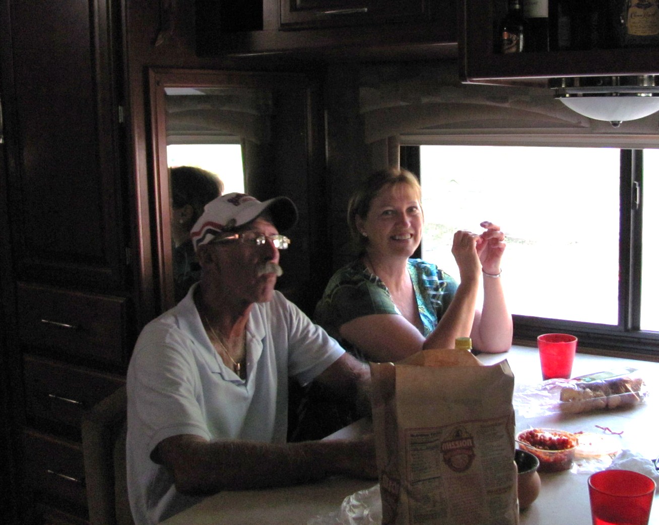 rd. This year shortly before arriving in town we found out that our good friends, Curt and Linda, would also be in town this weekend so of course they were invited to join in the festivities! Patty and Steve brought munchies for appetizers, Deborah and John brought a salad, and I made homemade lasagna. Though a little crowded in the RV, everyone had a great time and no one over-imbibed in spite of the party’s name…it’s just tradition now.