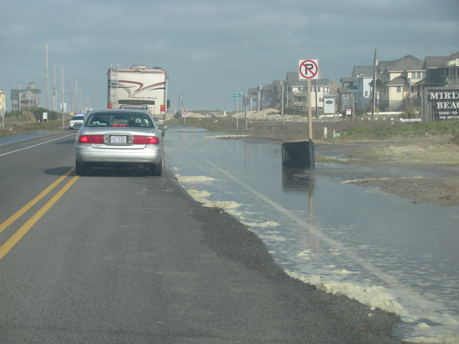 www.nps.gov/wrbr) at the other end of the island, but it had been particularly stormy the night before, and as it turned out, the ocean had washed up over the sand dunes a few miles down the road on Hwy. 12 (the main road connecting the islands of the Outer Banks). We were sitting in a lin
