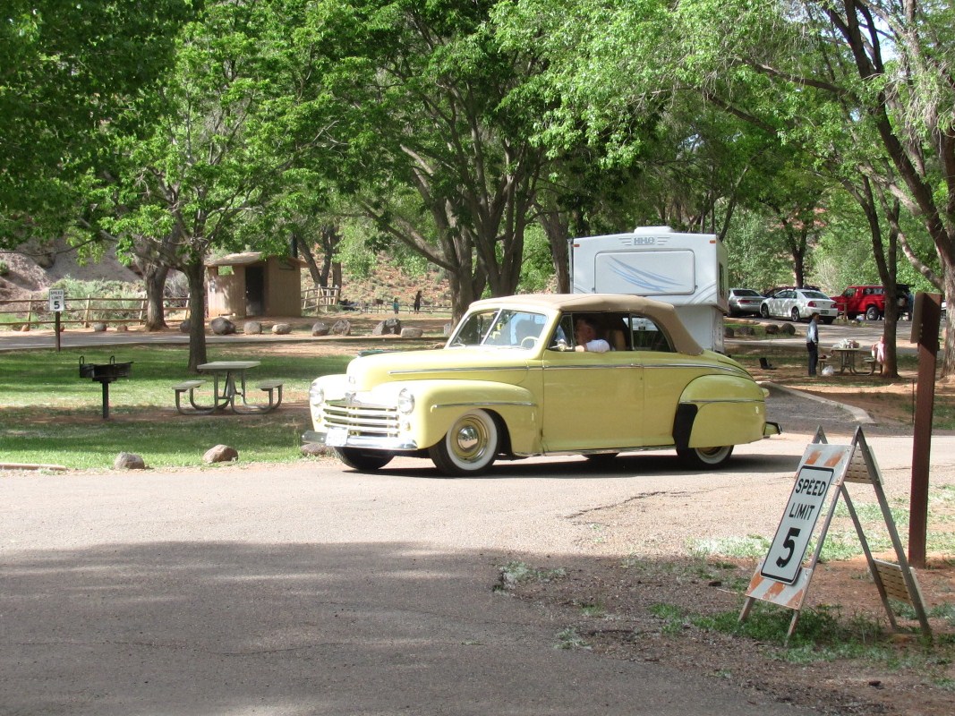 One afternoon about 8 vintage cars turned into the campground, but they evidently weren’t here to camp…just cruisin’ through for a good time.