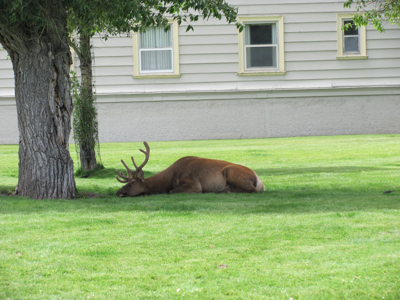 ally were able to get the same site we had last year. (The bull elk pictured at right was evidently tired from greeting all us guests as we came through the town of Mammoth. :-)