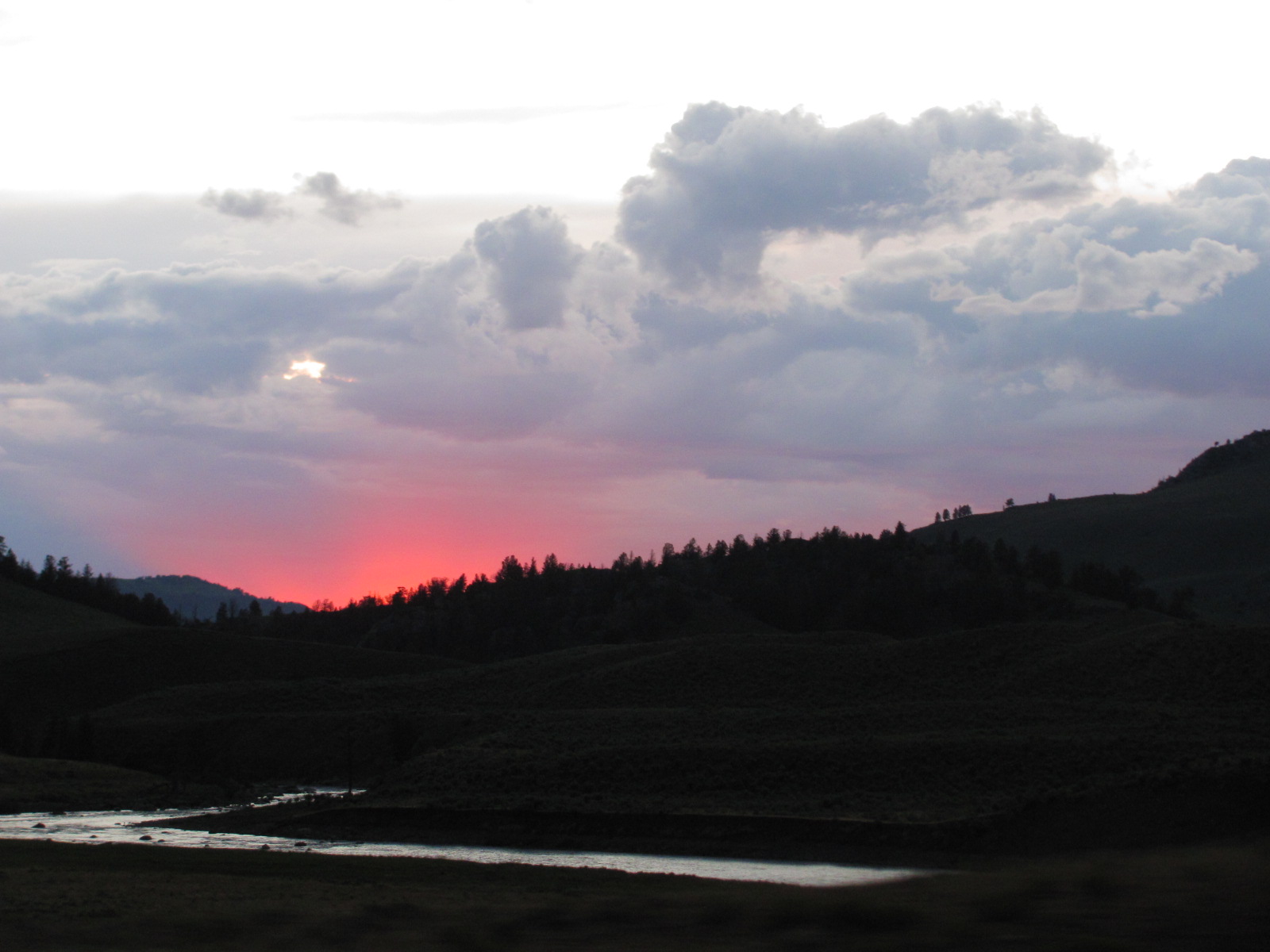 st of the bison rut, that time of year when the males aggressively court the females and can be quite aggressive to anyone else! I took a short video with my camera so the sounds could be heard, but unfortunately the file is too large to post here. You’ll just have to use your imagination while enjoying this beautiful sunset pictured at left.