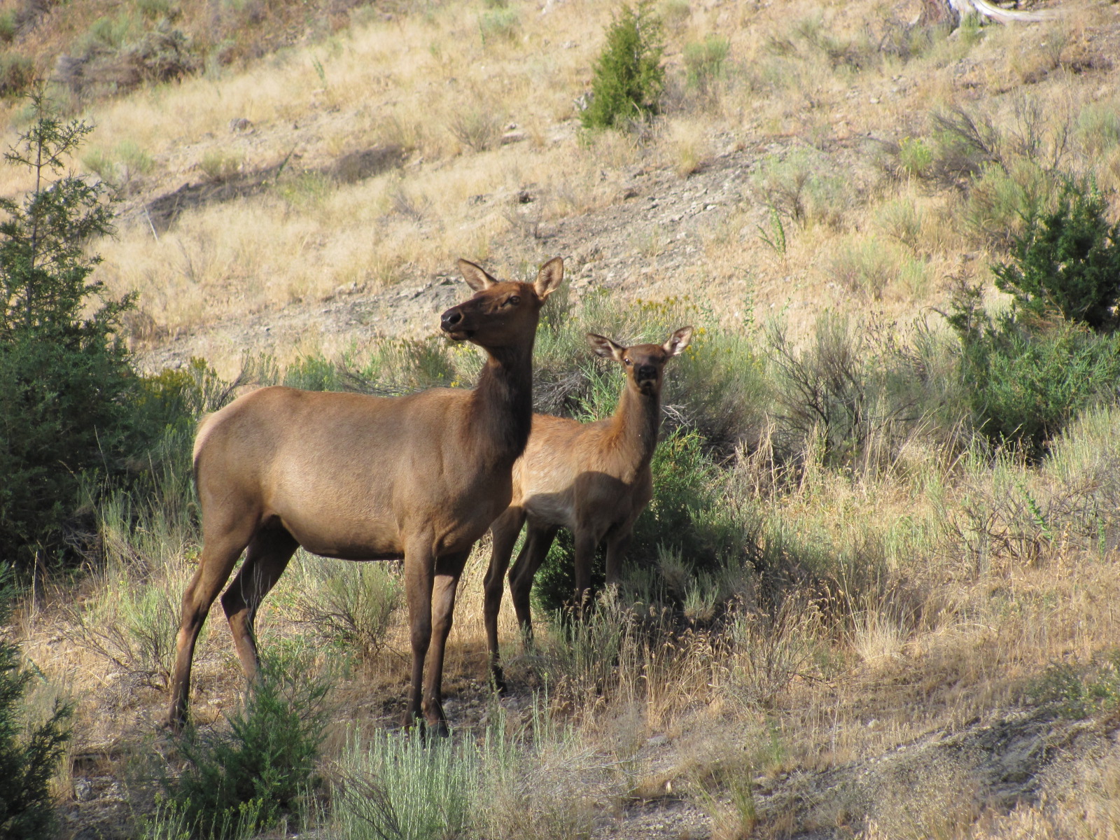 Elk are beginning to come through the campground…cows, calves, and even an occasional young bull but no big bulls yet. And we’re enjoying getting to know our fellow campground hosts better. One afternoon Elaine and Bill invited us for lunch at the Cowboy Grille, and anoth