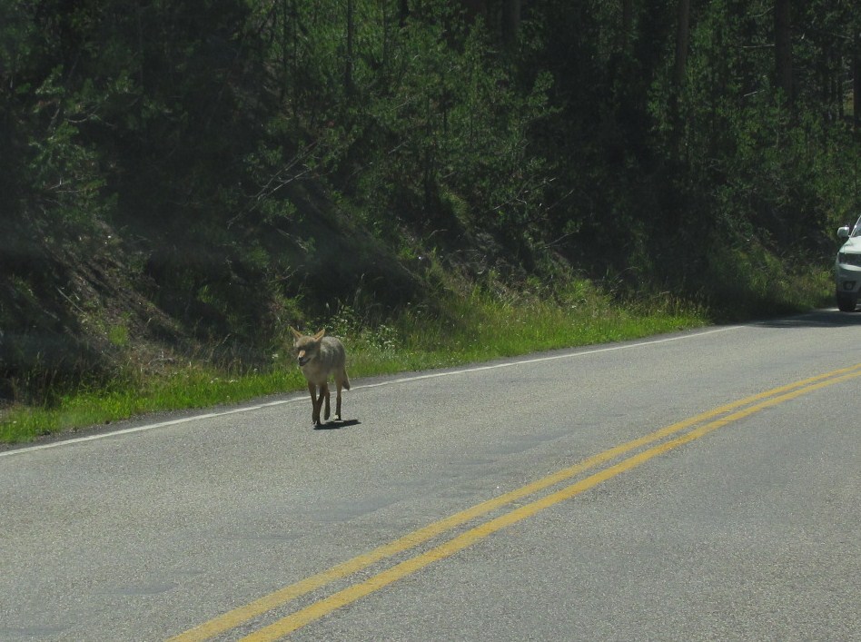 A couple of days later we drove past the Undine Falls on our way to Lamar Valley with hopes of seeing some wolves (34 miles one way). While at Capitol Reef, Russ had gotten a great deal on a spotting scope through eBay, and he had modified the tripod from our regular telescope to accommodate it so we were e