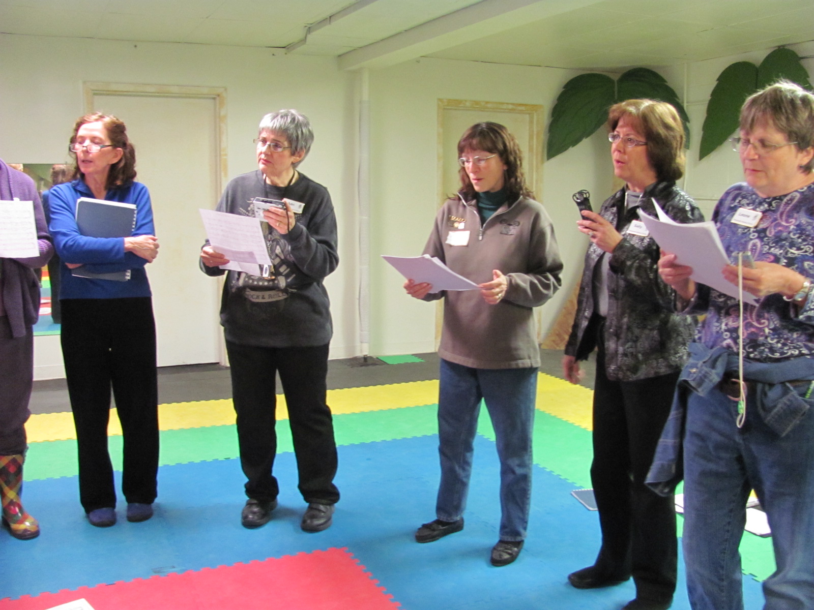 med us with a song, and then Maggie took us guests out into the hall to work on a couple of tags (the last couple lines of a song) that she hadn’t even taught the chorus yet. After showing the chorus what we had learned, we joined them on the risers, learning and singing right along producing some wonderful sounds.