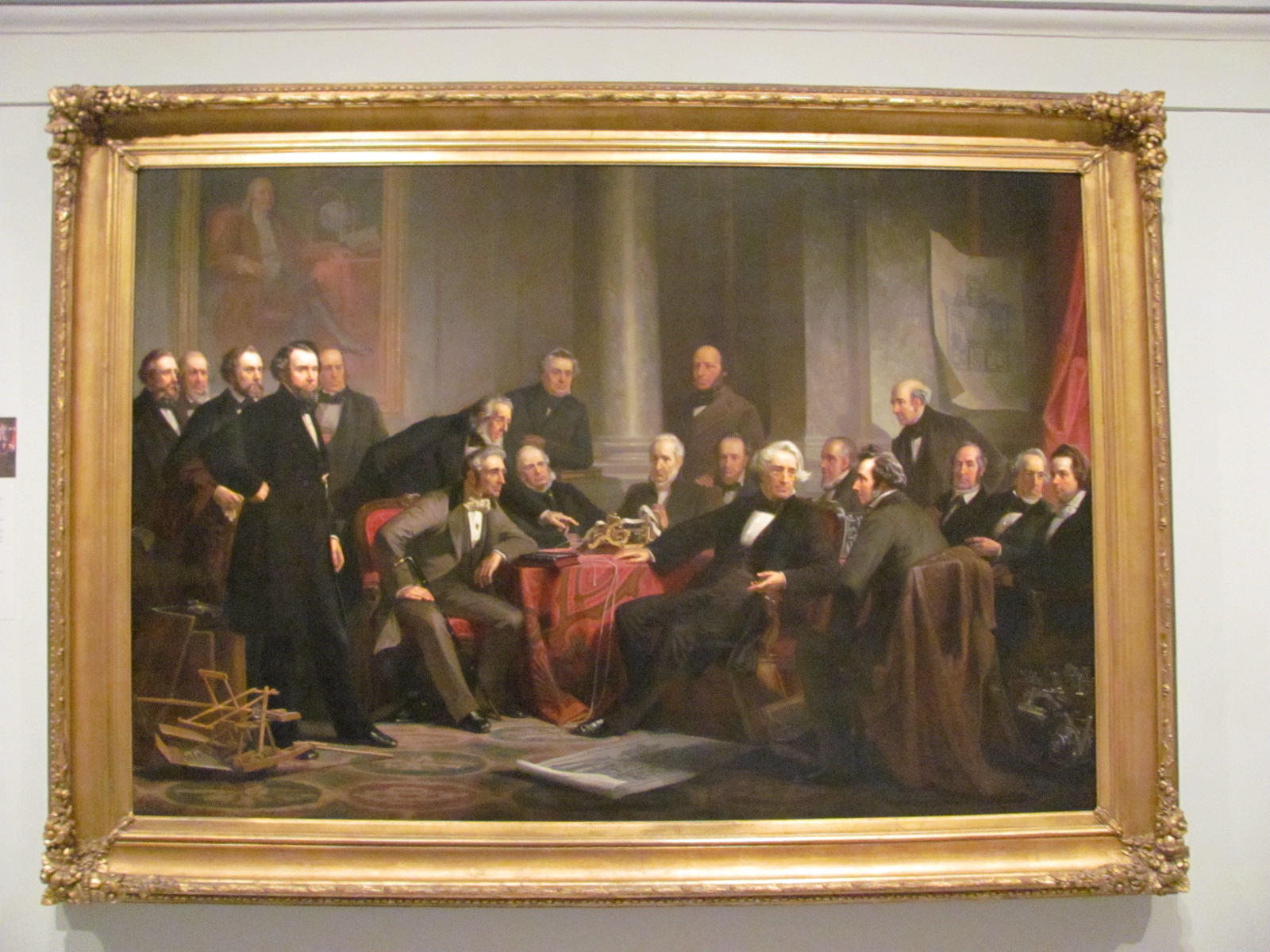 One interesting piece is called “Men of Progress”, an 1862 painting that was conceived in the artist’s mind. The 19 men pictured never appeared in the same room together, and in fact posed individually by the artist, Christian Schussele. They were some of the most distinguished inventors in American history…names like Goodyear, McCormick, Morse, and Howe just to name a few. A beautiful and very imaginative piece.