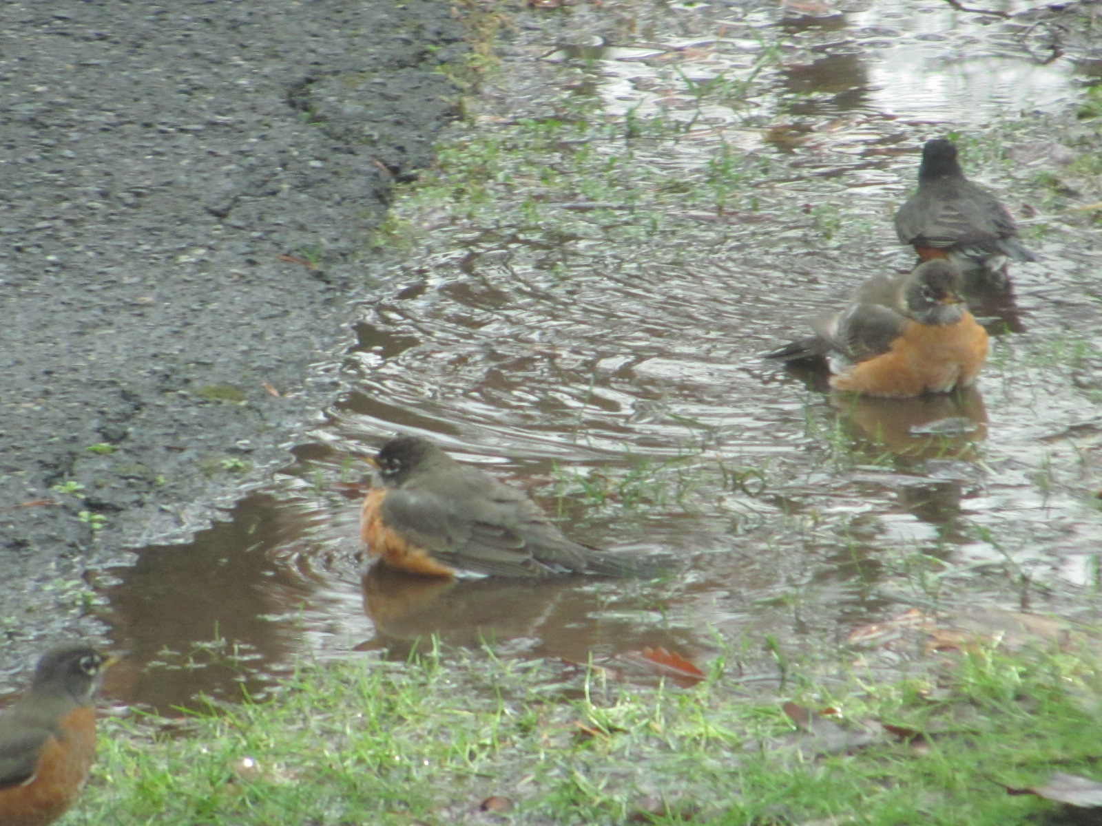 The weather here has been up and down. We had snow again at the beginning of the week, a little more than the previous one, but was gone by the next morning so I didn’t get a picture. And then a couple of days later it was nearly 60 degrees! Then the rain came pretty steadily for several hours and created water puddles everywhere which the robins thought were great bird baths. However, the cold has returned this weekend with an expected low of 18 Sun. night…crazy weather!