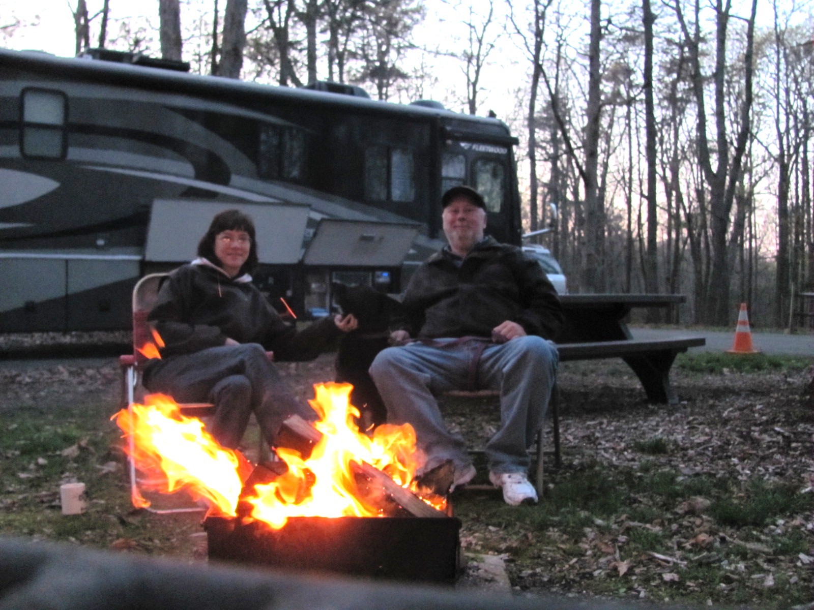 ted at Greenbelt a couple of years ago so were familiar with the routine and would be staying for a few months. Though we weren’t together long, we had a wonderful time getting acquainted and plan to stay in touch. Our last night they joined us for a roaring fire, but it was too dark for a photo with them by the time they had finished their rounds.