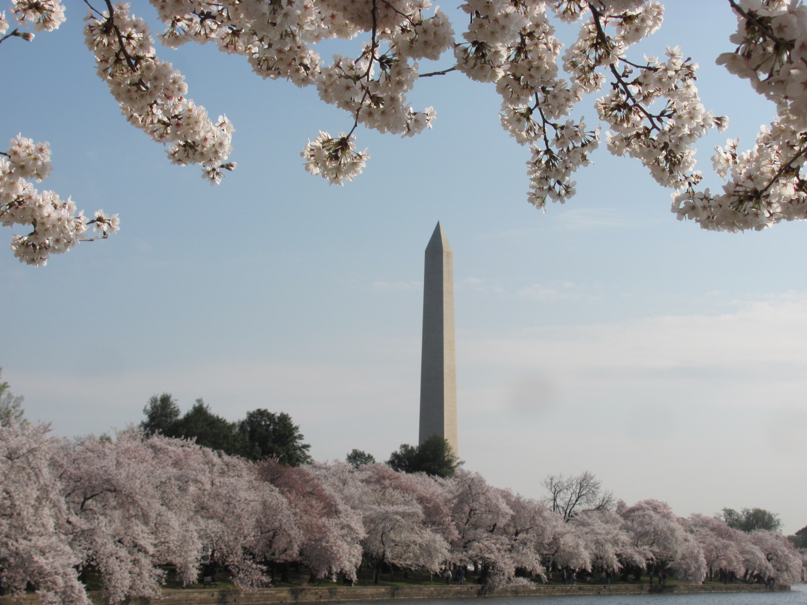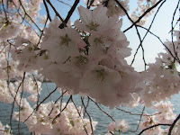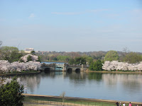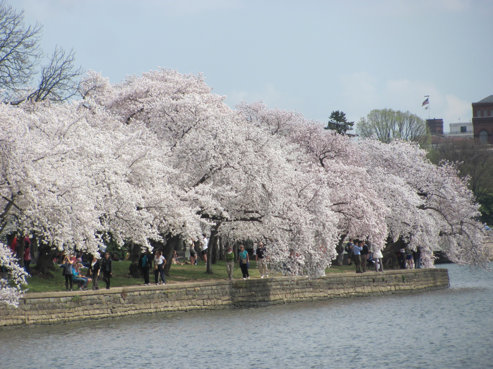 wards the Basin. Hundreds of cherry trees surround the Tidal Basin with some branches even hanging over the walkway. It was the perfect day to observe this incredible beauty because there was hardly a bud unopened and no petals had yet dropped to the ground.