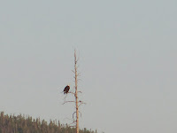 A couple of days later we went out once again later in the evening for a quick drive, and though we didn’t see much wildlife this trip, we did spot our first bald eagle since we got to Yellowstone this year. It was perched high on the limb of a dead tree near Swan Lake Flats, and the zoom on my little camera was able to get a halfway decent shot.