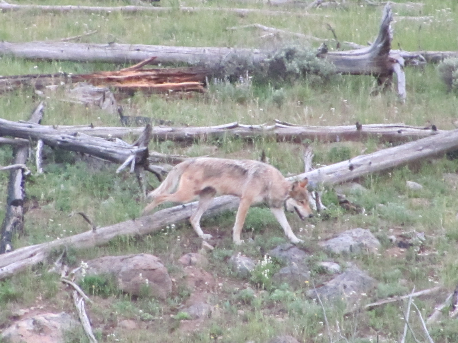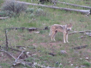 It was an elk carcass, and yes, that is a wolf. From what we learned, probably the alpha male of the Canyon Pack.
