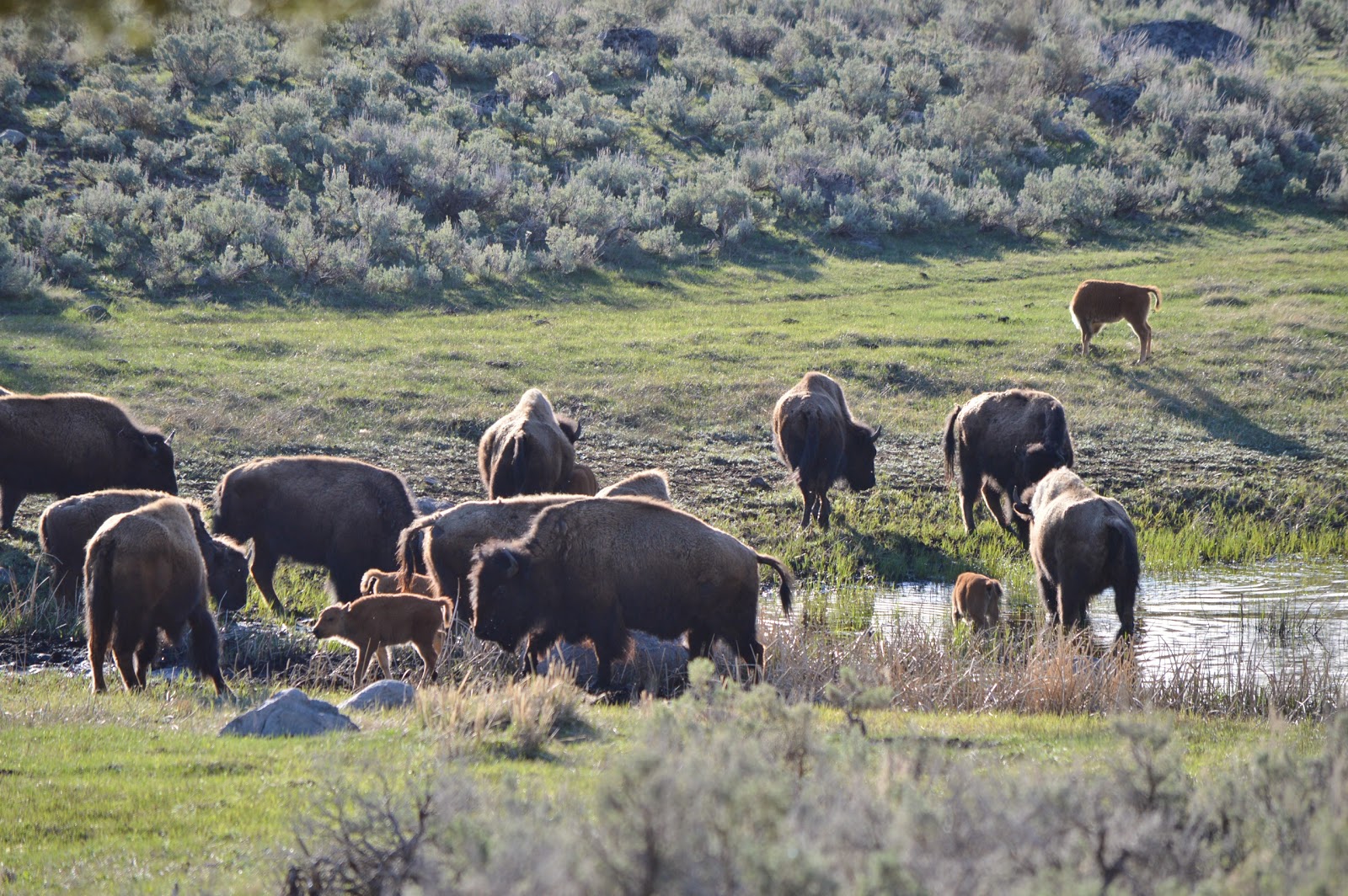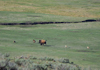 we decided to drive through the YCC housing area and there finally found several bison calves with their families.  They are so cute when they are little and look so much like baby cows!