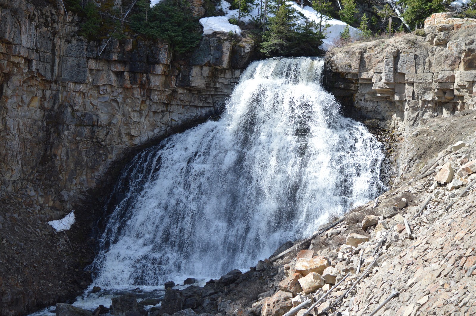 The snow melt had begun, and the rivers were beginning to roar, running high and fast.  There seemed to be lots of water everywhere as we made our way towards Tower Junction and the Lamar Valley even in Phantom Lake where usually none is seen (thus its name).  Along the way we saw something we had never seen before, a herd of bison actually in one of the ponds, and nearby a couple of young bulls were practicing their head butting skills.