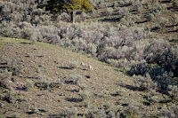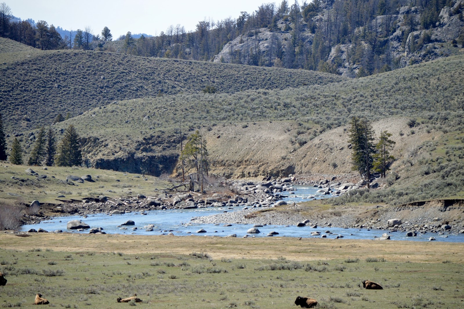 On other days bison could be found grazing up the hill in Mammoth Hot Springs, and a lone coyote scouted the hillside in the campground for its next meal.  Further north along the banks of the Gardiner River,