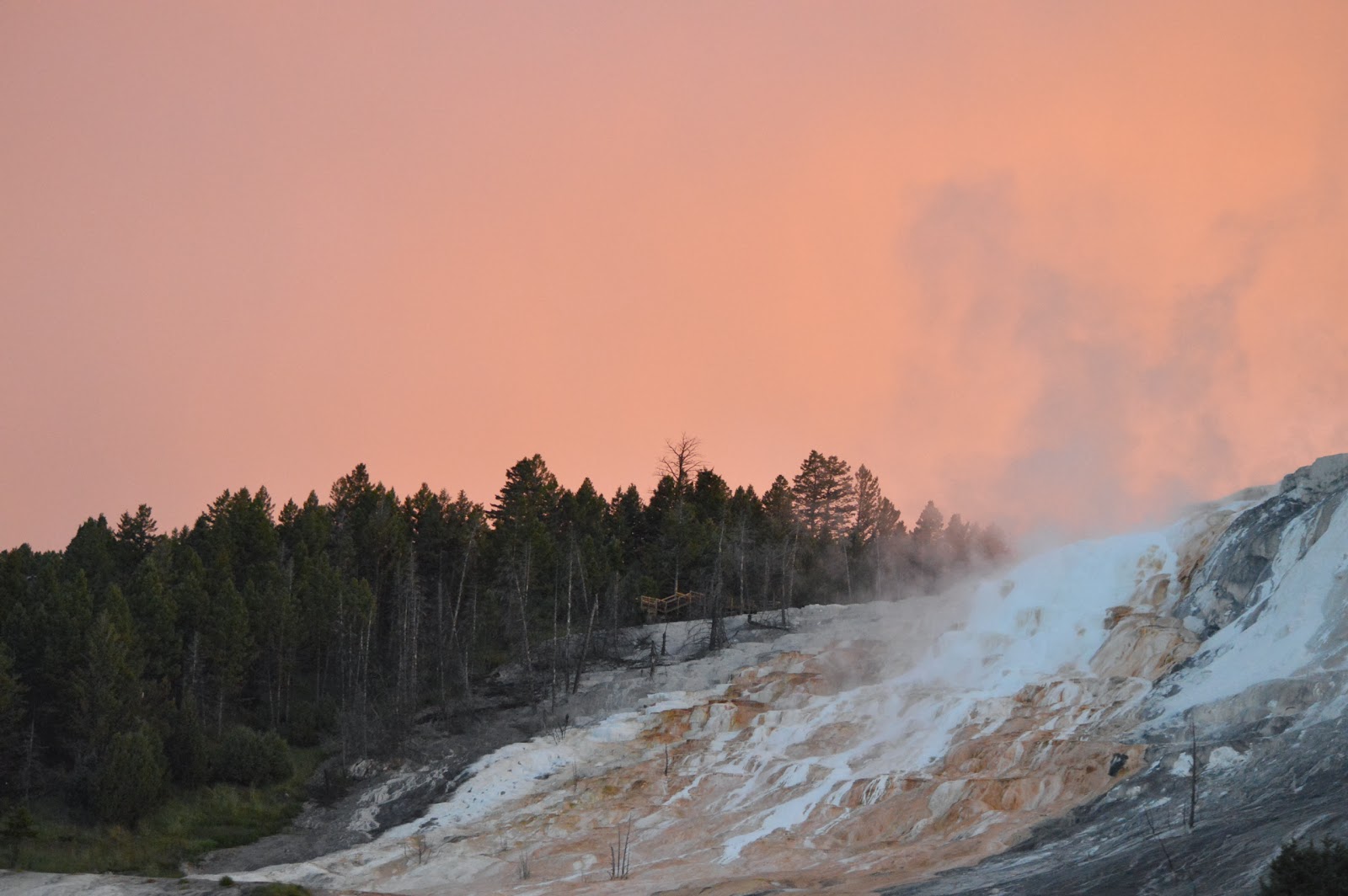 our way back from looking for critters the sunset above and behind the Mammoth Terraces was spectacular.  As usual these photos don’t even begin to do justice to the beauty that the eye can see.