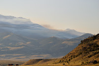 the Emigrant Peak fire off in the distance.  It had been burning for about a week and at this point was at about 600 acres but in no danger of harming any structures or people.