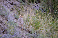 trip to somewhere we haven’t been!  Before we even got out of the park, though, we spied this shaggy looking coyote along the rocks in the Gardiner Canyon.  He’s obviously collared and tagged so not just a stray that wandered into the park.