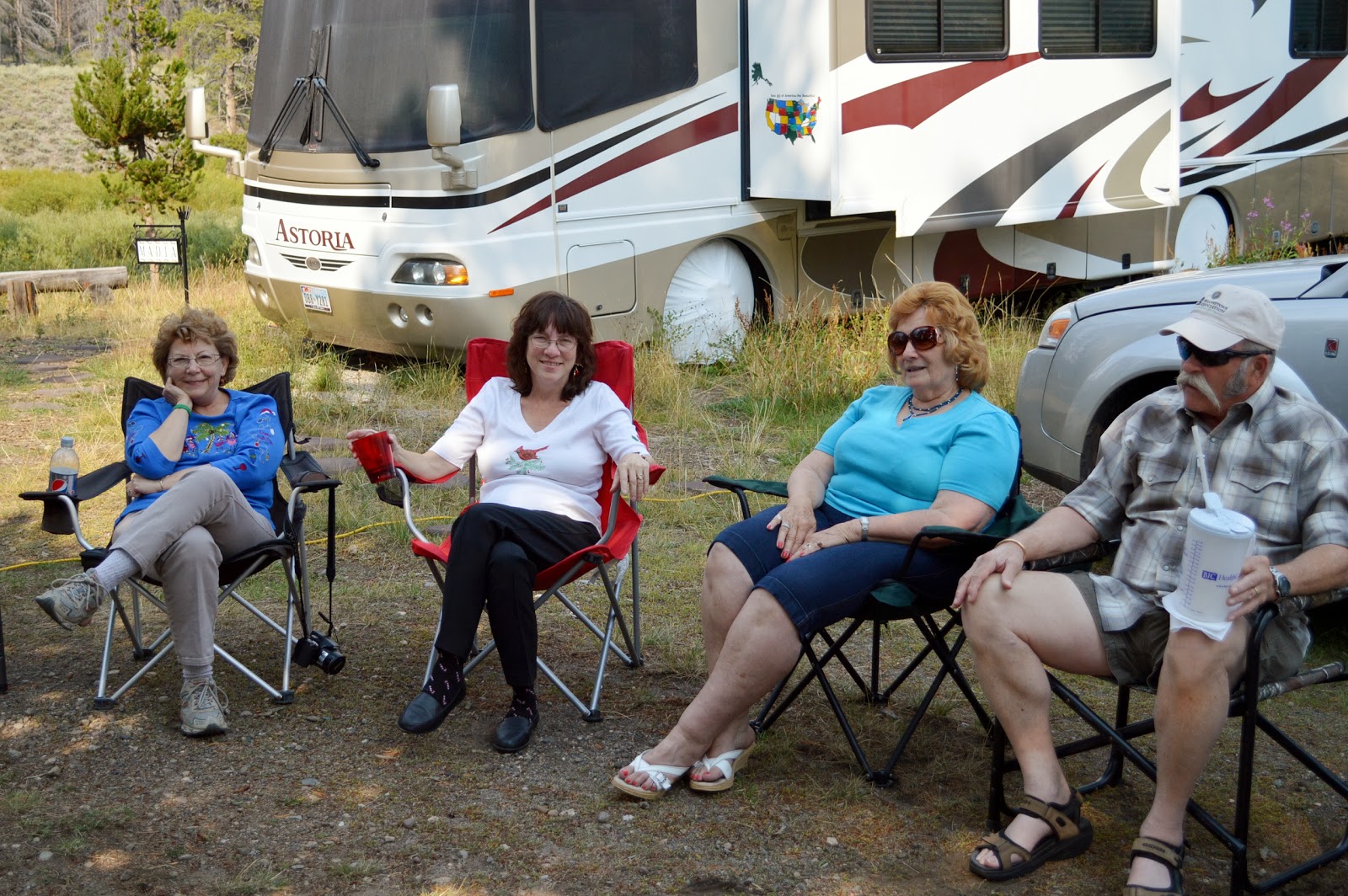 What’s a potluck?  A gathering of people…a sharing of food…a fun time!  Everybody bring a dish to share and let the camaraderie begin.  We’ve been fortunate to be included in four of them this season starting in May not long after we arrived.  Longtime ranger, Russ, was retiring and a farewell potluck was held at the Mammoth Community Center.  Burgers and