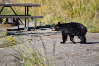 Mama was pretty well out of sight most of the time, but the cubs were quite active, walking through campsites including one that was occupied.  This camper was not using a tent or staying in a vehicle but was instead sleeping in a cot out in the open.  When Russ first got down there, he thought the guy was actually sleeping in it as the cub walked by!  Turns out he was nearby taking pictures.