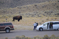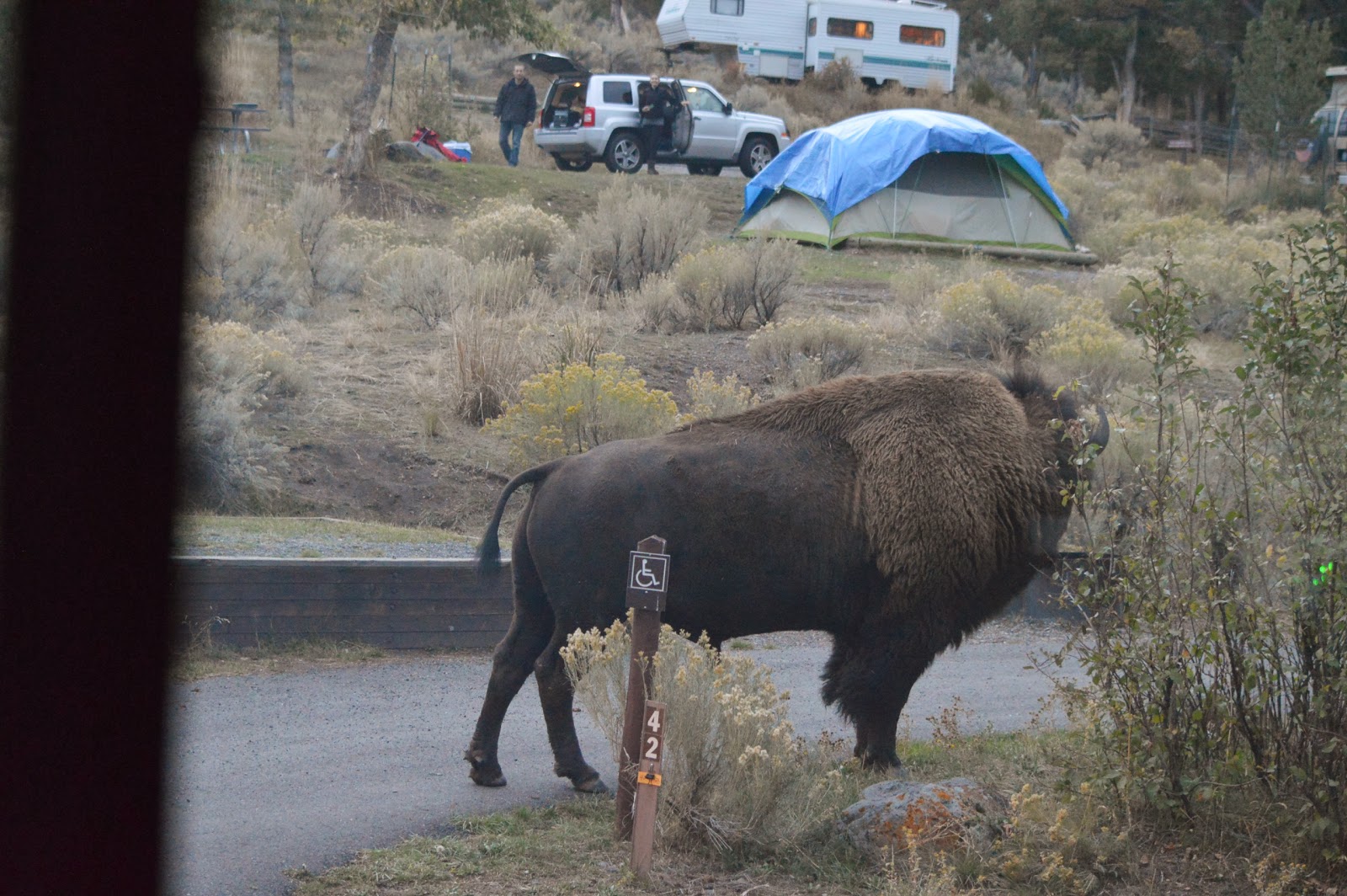 the tourists.  Oh, wait, it’s the human’s responsibility to keep that 25 yard distance from the wildlife!  A couple of day’s later he actually came through the campground (well, maybe it wasn’t the exact same bull), came right up to our