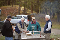 getting together every year at the same campground for over 20 years and always eats in style when camping…no hot dogs and hamburgers for this gang!  Rich served as Chef Bill’s assistant this time and was in charge of toasting the tortilla triangles and plating the huge