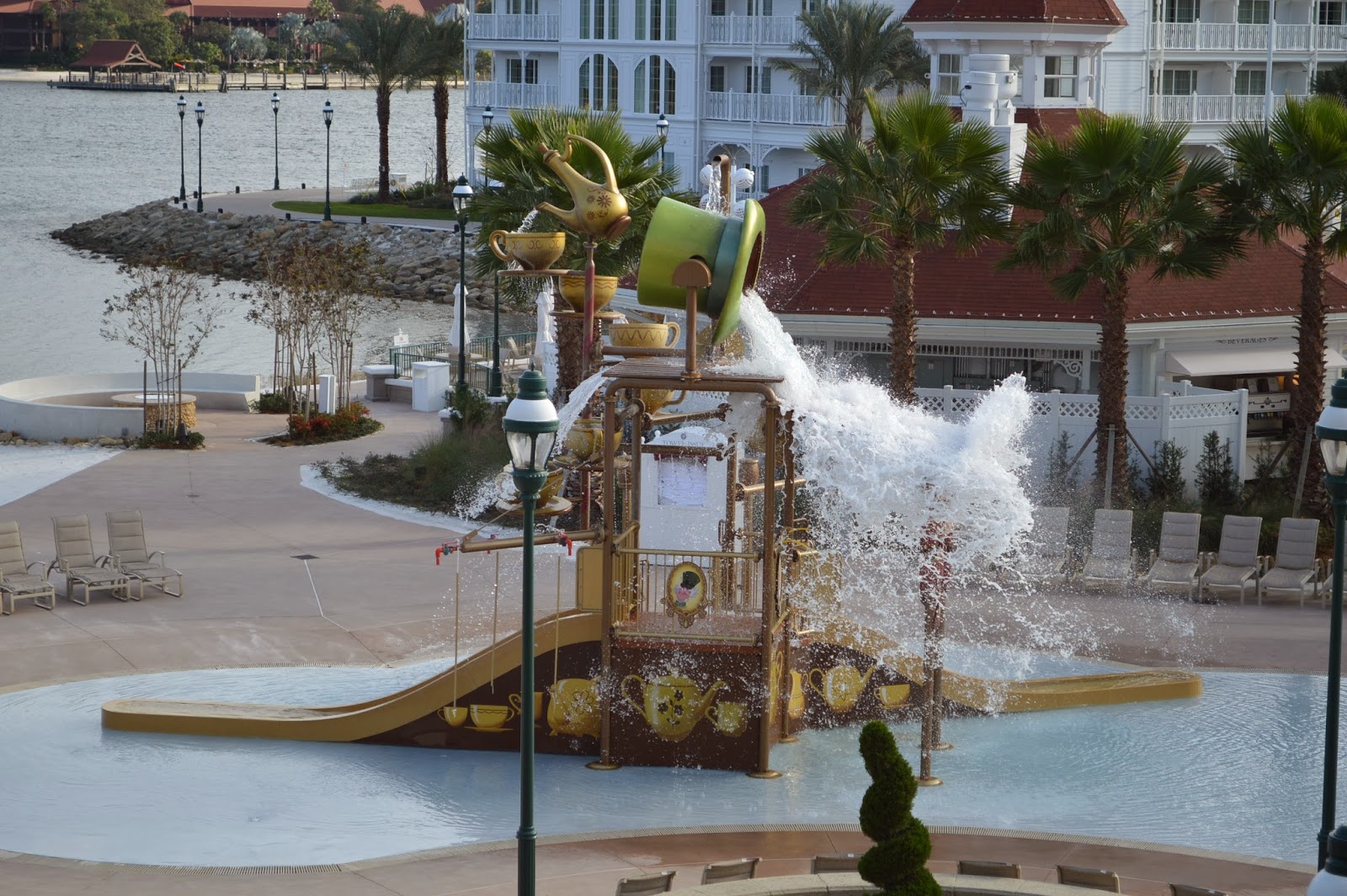 Hatter’s hat fills with water and then dumps onto guests below! Nobody was in the pool since it was too