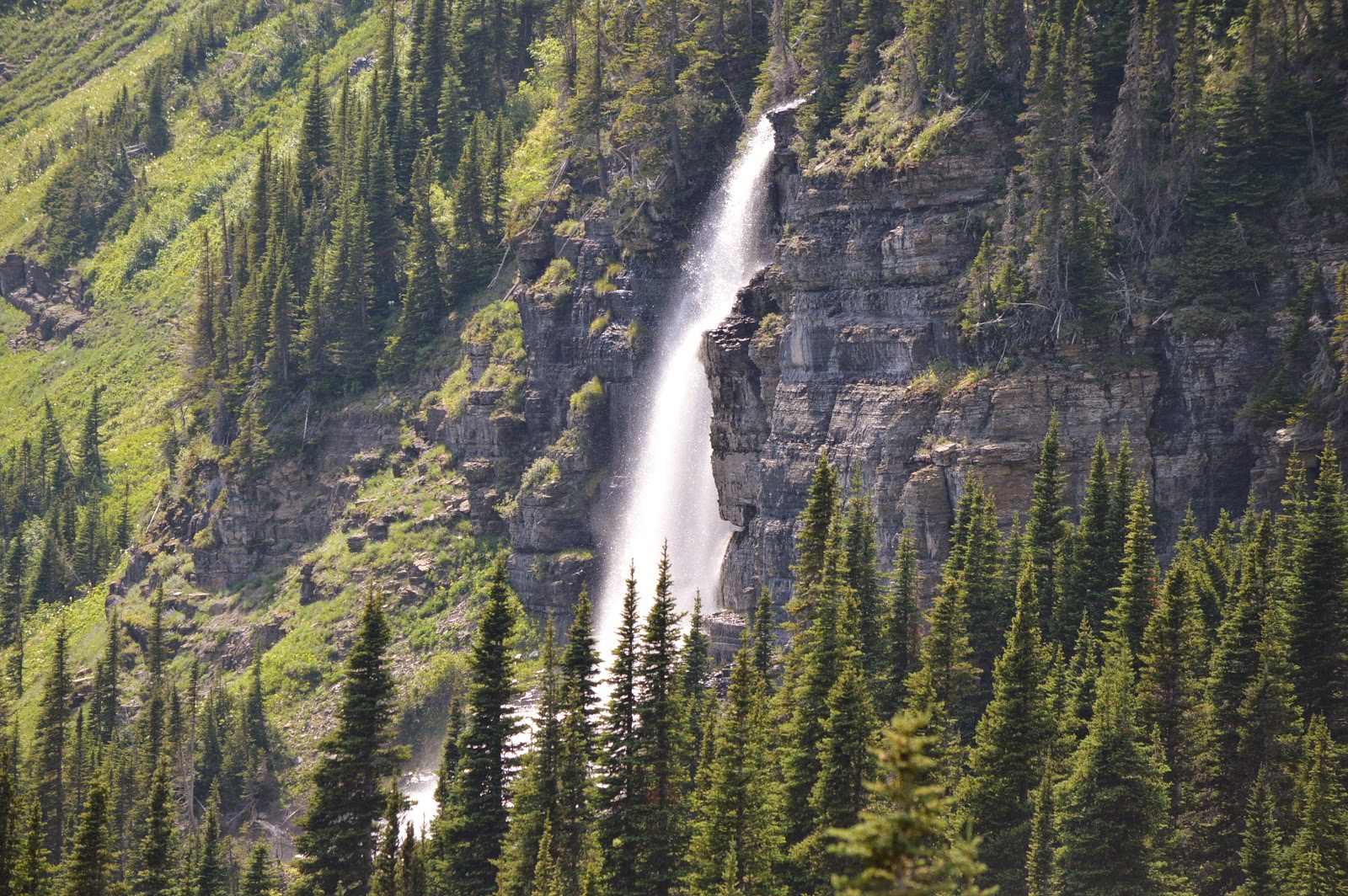 have many easily seen waterfalls like along the Going-to-the-Sun Road, it’s still beautiful, and our main goal here was a stop at the historic Swiss alpine themed Many Glacier Hotel located on the Swiftcurrent Lake.  The views from