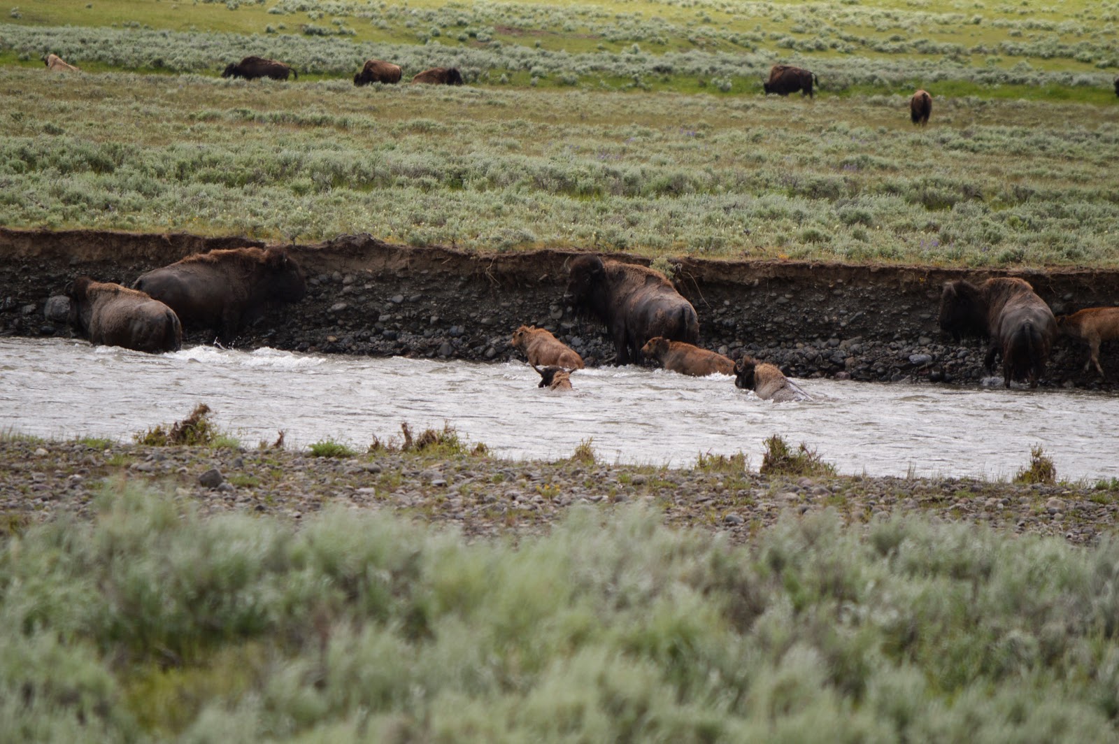 Yellowstone always seems to have a surprise up its sleeve since every year we get the opportunity to see or witness something we’d never seen before.  This year has proven to be no different.  One afternoon out in Lamar Valley, a herd of bison were crossing the river.  What