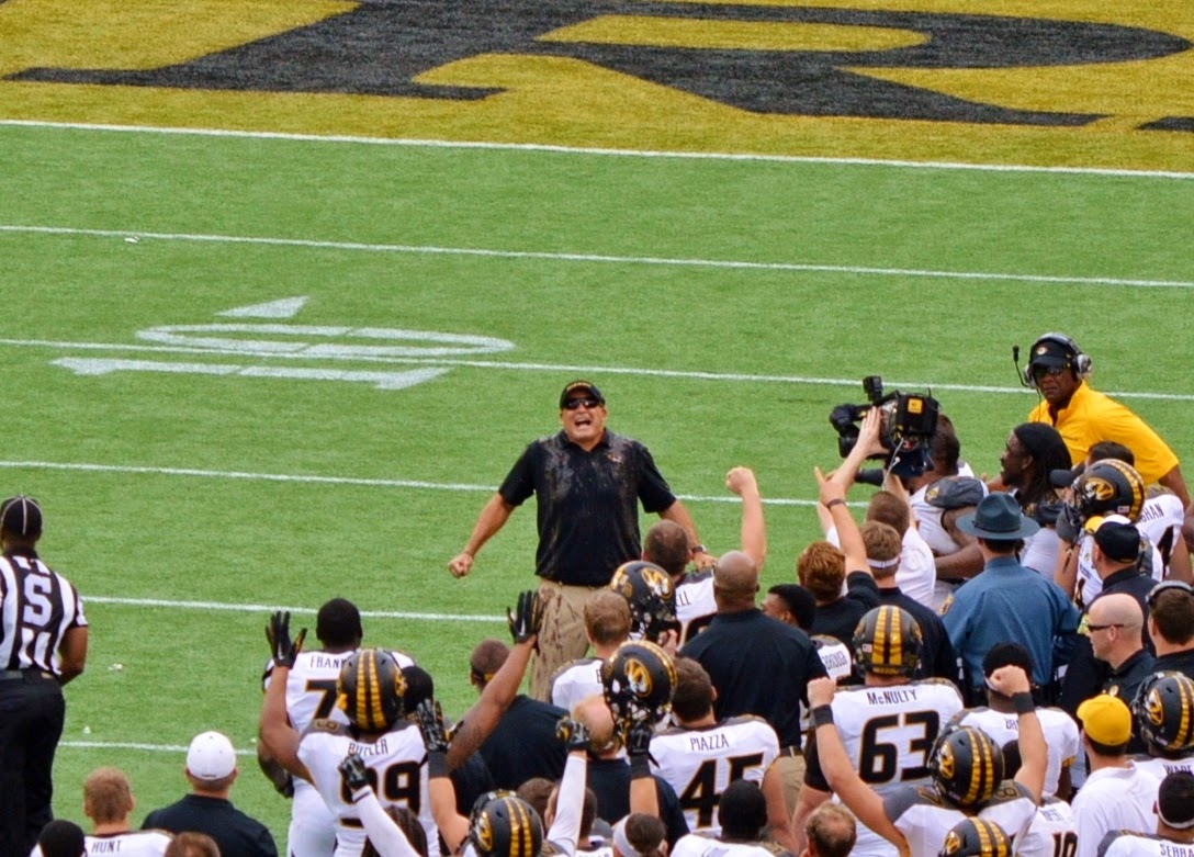 end of the game Coach Pinkel was doused with the obligatory bucket of Gatorade,