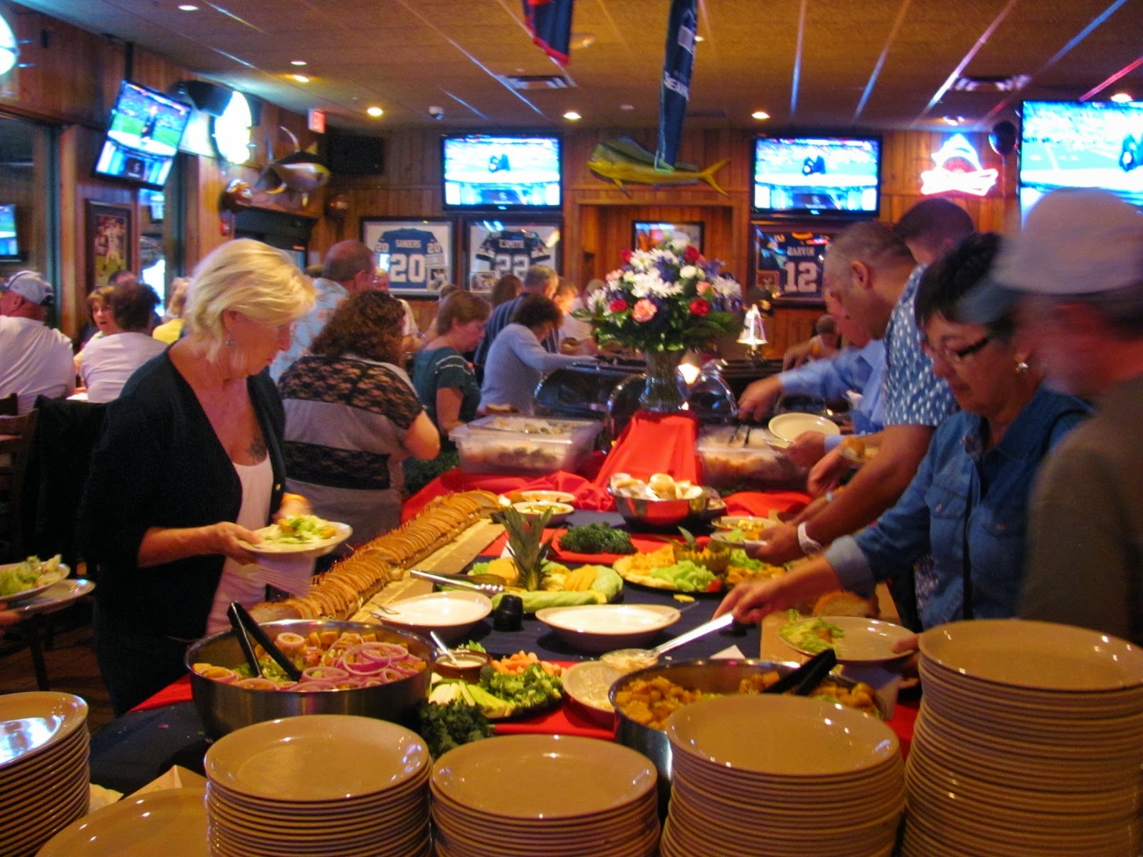 snow crab legs, hoagies, wings, jambalaya, pastas, salads, dessert bar, and