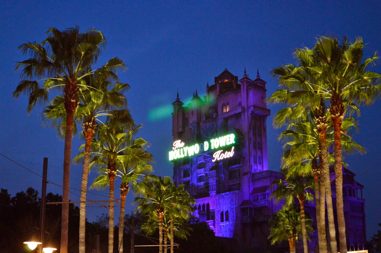 The sun had set, and we had a great view of the Tower of Terror as we made our way over to the Hollywood Hills Amphitheater. We came