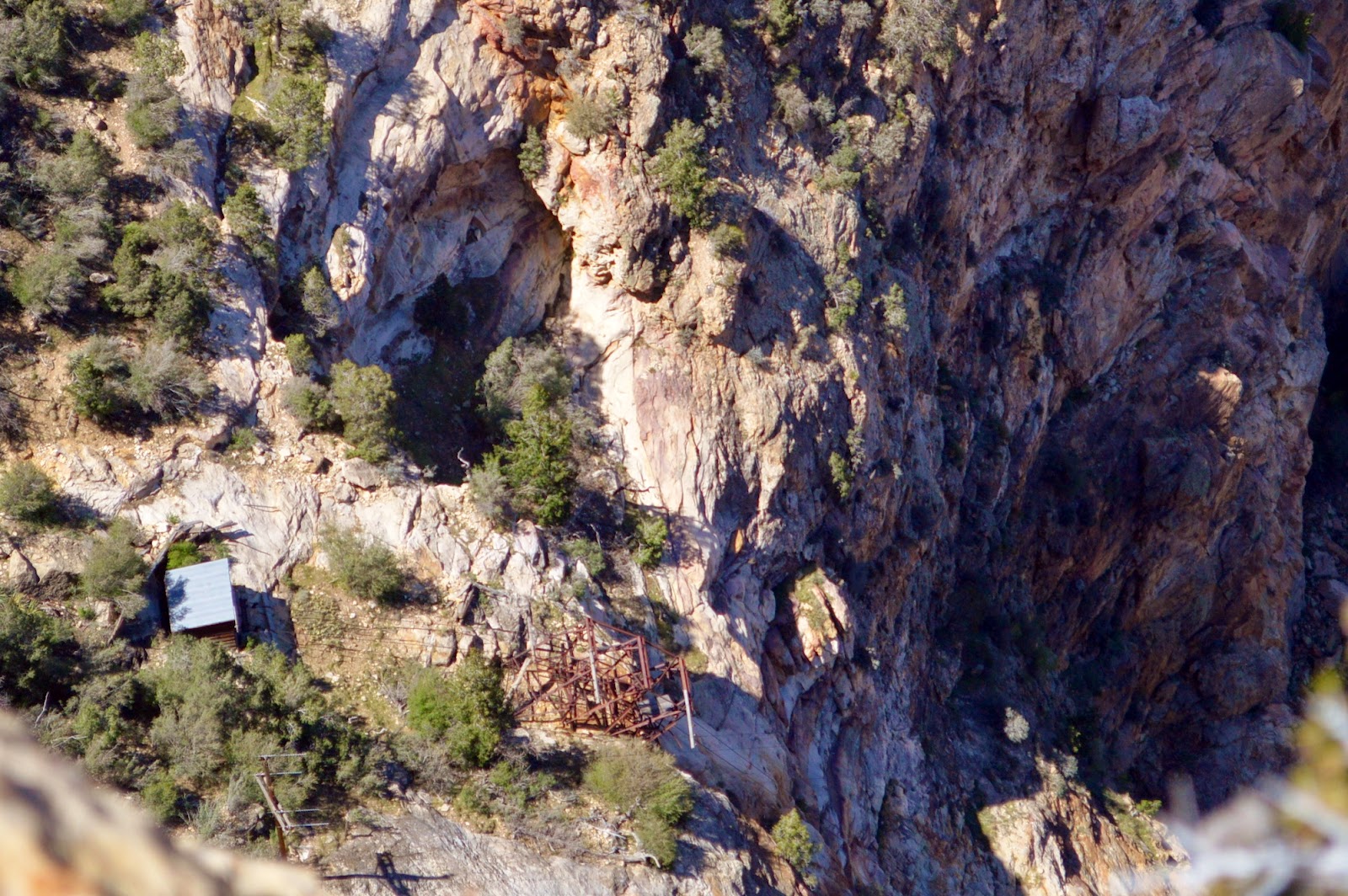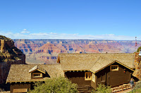 into the side of the hill and made of stone and wood. Though the road ends here, the Grand Canyon continues on for another 180 miles through