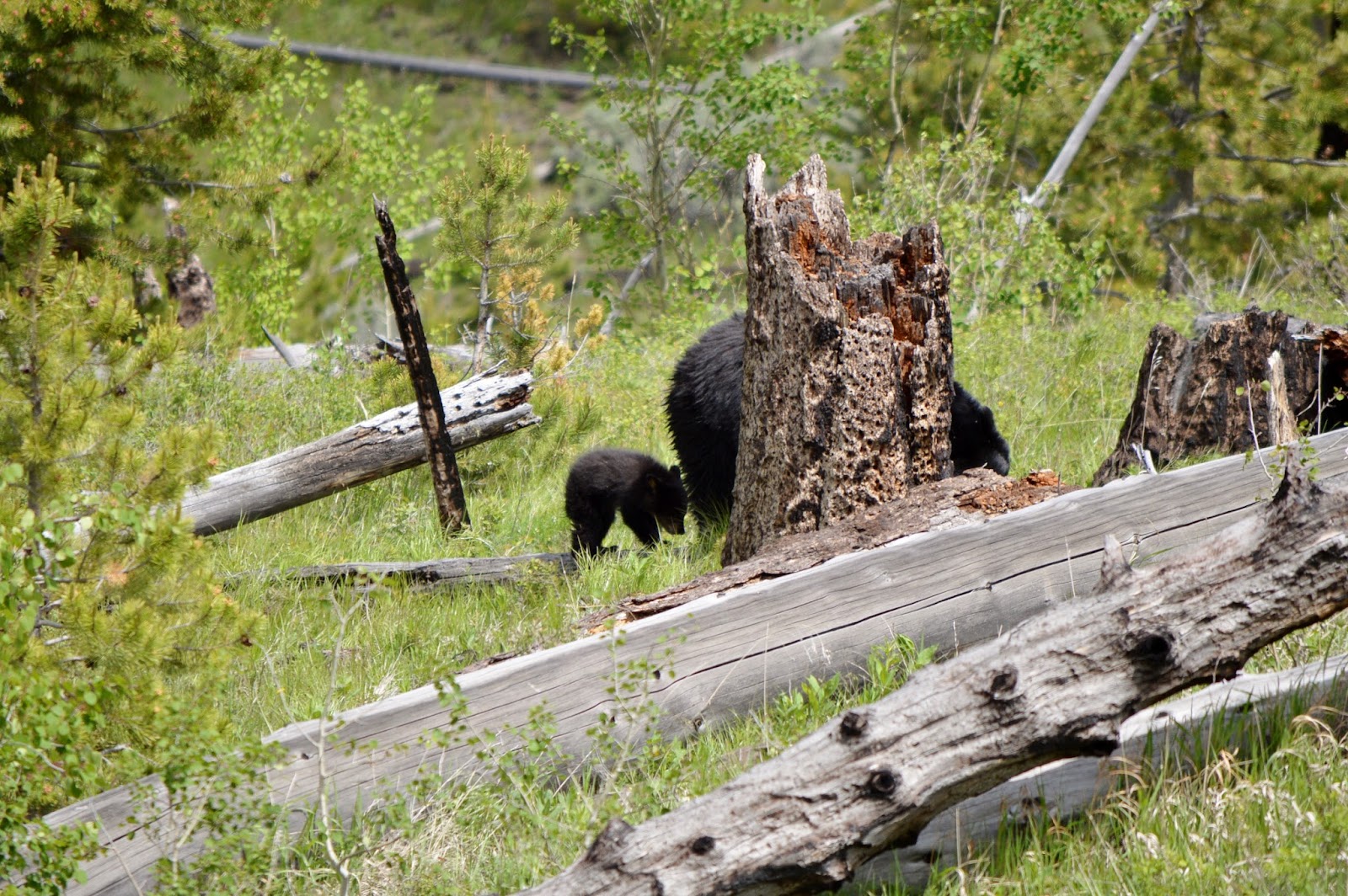 On our way back home we came across a large traffic jam across from the Petrified Tree road so of course we parked and got out.  It was a black bear sow with her two cubs born this year that we’d been hearing about but had not yet seen (though I was only able to get a picture of one cub).
